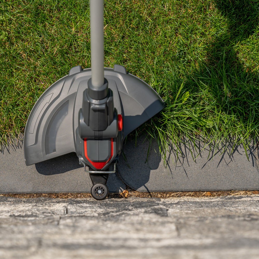 S hmotnosťou len 2,4 kg vrátane batérie a ergonomicky nastaviteľnou prídavnou rukoväťou je tento vyžínač vysoko mobilným a ľahko použiteľným pomocníkom pre každého majiteľa záhrady. Flexibilná, otočná strunová hlava so šírkou záberu 25 cm a ochranou rastlín zabezpečuje presné zastrihávanie na okraji trávnika, pod kríkmi a na stenách. Vďaka automatickému mechanizmu môžete počas zastrihávania ľahko nastaviť optimálnu dĺžku struny poklepaním strunovej hlavy o zem. Výškovo nastaviteľnú hliníkovú teleskopickú hriadeľ si môžete individuálne nastaviť podľa svojej výšky. Sklopné koliesko na orezávanie okrajov vám pomôže čisto orezávať okraje.