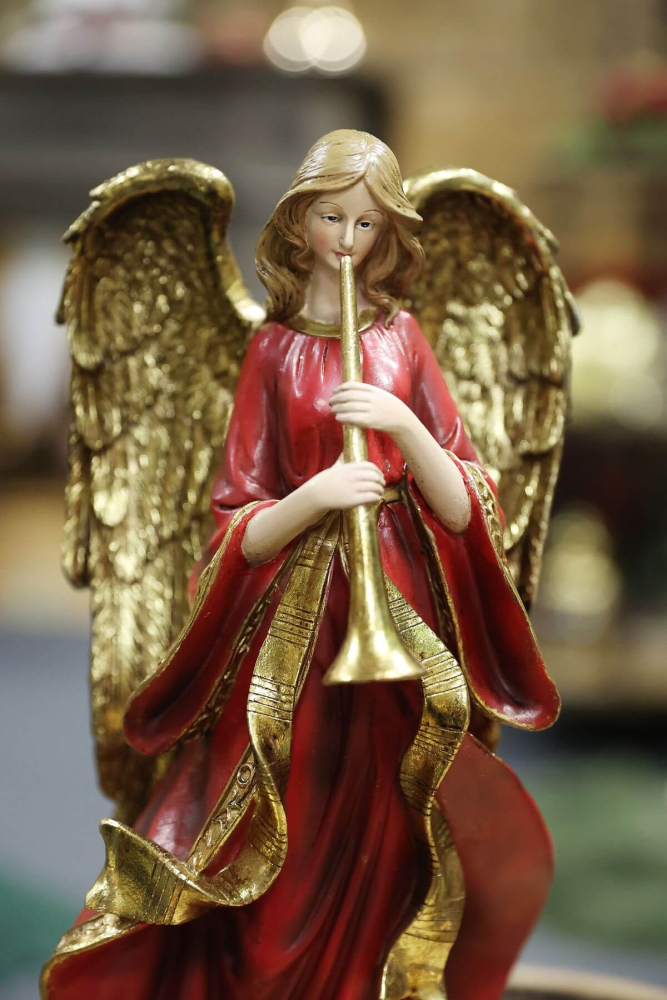 Soška anjela v červených šatách so zlatými prvkami slúži ako stojaca dekorácia hlavne vo vianočnom období. Anjel si určite nájde svoje miesto vo Vašom interiéri aj počas celého roka.