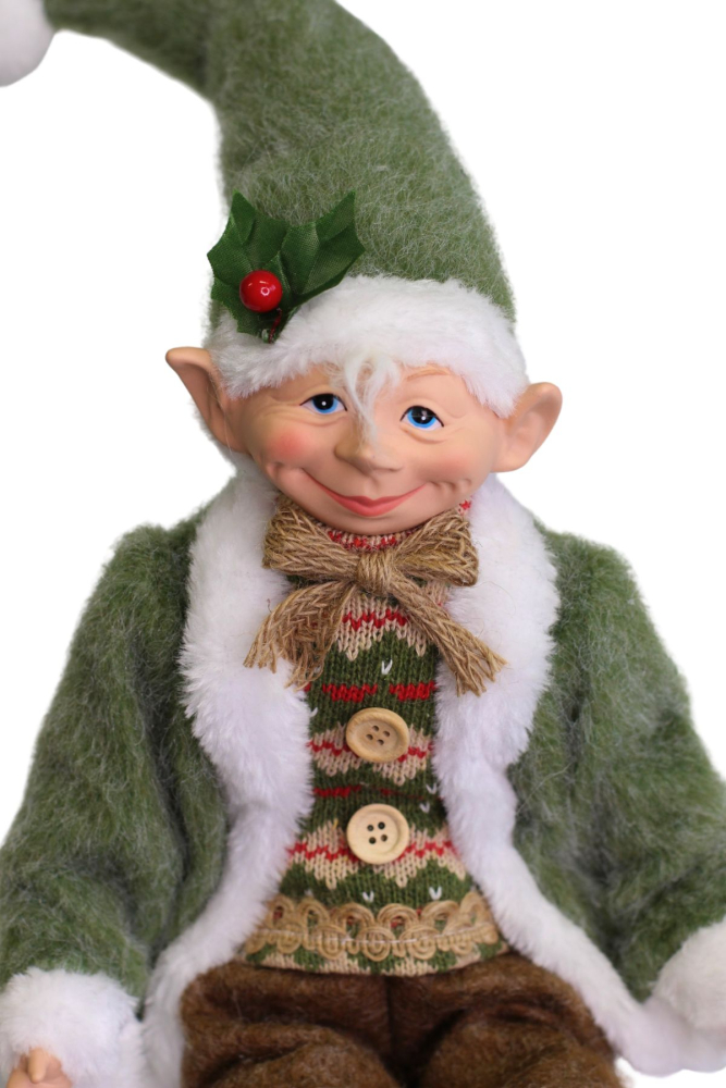 Je ohybný, s drôtom vo vnútri, preto sa dá prispôsobiť polohe akú práve potrebujete. Škriatok je mimoriadne obľúbená vianočná dekorácia, je vhodný aj ako darčekRozmery: výška sediaceho škriatka 40cm, výška škriatka v stoji 44cm, šírka 10cm,hĺbka 8cm