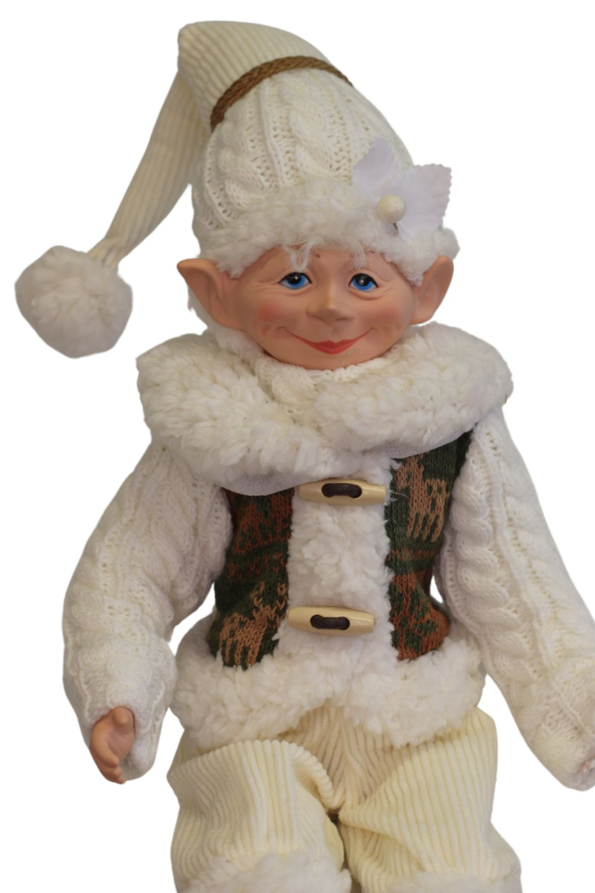 Je ohybný, s drôtom vo vnútri, preto sa dá prispôsobiť polohe akú práve potrebujete. Škriatok je mimoriadne obľúbená vianočná dekorácia, je vhodný aj ako darčekRozmery: výška sediaceho škriatka 40cm, výška škriatka v stoji 44cm, šírka 10cm,hĺbka 8cm
